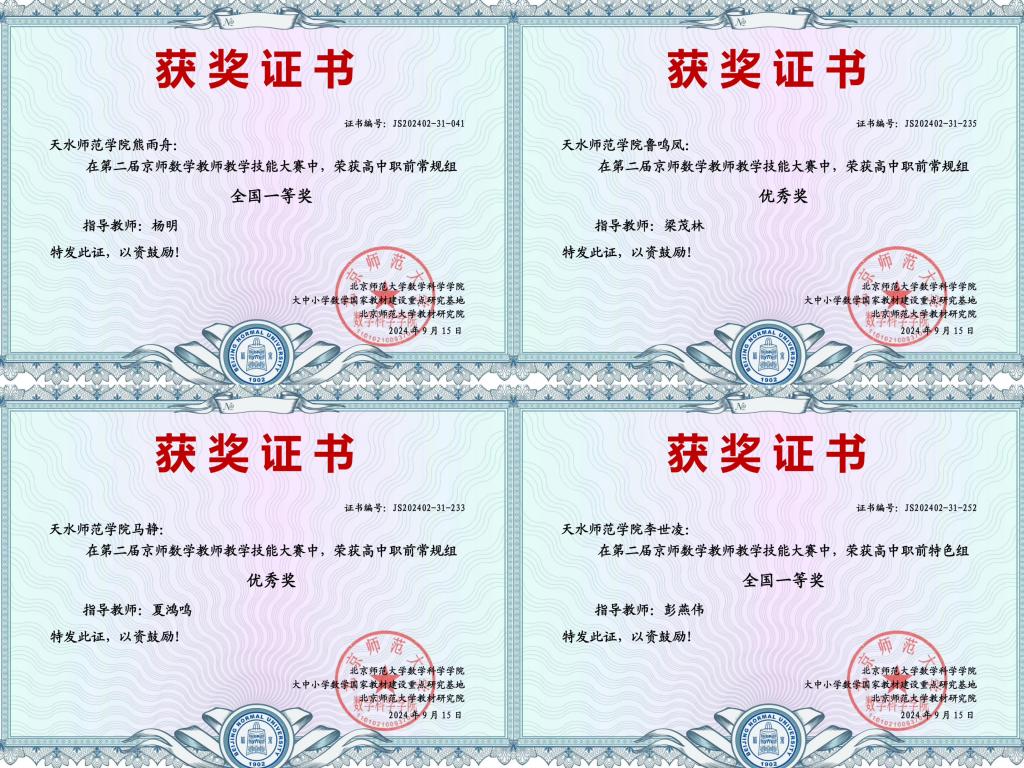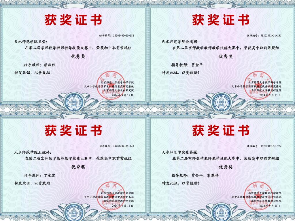天水师范学院开元集团网站学生在第二届京师数学教师教学技能大赛中获佳绩