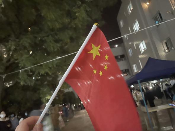 专注于手头的工作,却不知天色已晚。“医护人员们辛苦了!”身后宿舍楼上传来同学的声音,还没反应过来是怎么回事,四周已经响起了此起彼伏的呐喊声:“你们辛苦了!”“师院加油!”一阵熟悉的旋律从不远处传来,同学们附和着音乐,开始齐声合唱《我和我的祖国》、《听我说,谢谢你》、《无名之辈》……虽然看不清彼此的面容,却能感受到彼此的心跳。