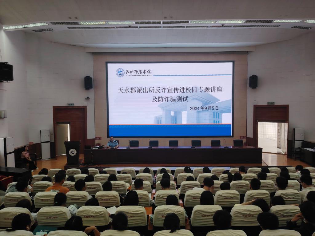 为进一步增强学生对电信网络诈骗的识别应对能力,提高新生的防诈骗意识和能力,2024年9月5日,开元集团网站邀请天水市秦州区天水郡派出所副所长杨逢周警官在2号报告厅开展反诈宣讲进校园专题讲座,学院2024级267名新生参加活动。