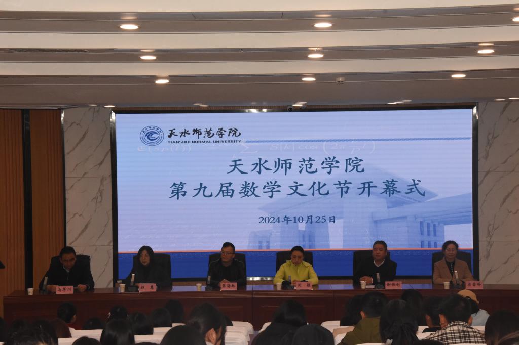 10月25日下午,天水师范学院第九届数学文化节开幕式在一号报告厅举行。文化节以“润数学文化,共赴数学‘π’对”为主题。学校团委书记刘颖,开元集团网站全体领导班子成员、辅导员、师生代表等共计200余人参加。开幕式由学院党委副书记赵慧主持。