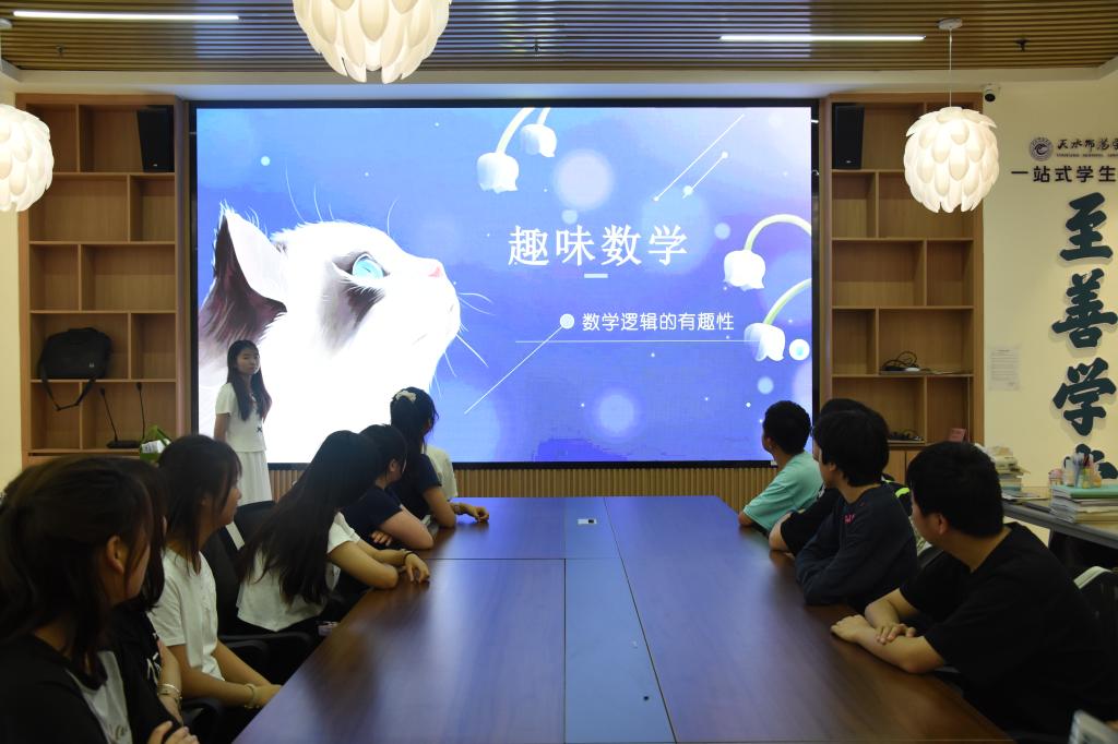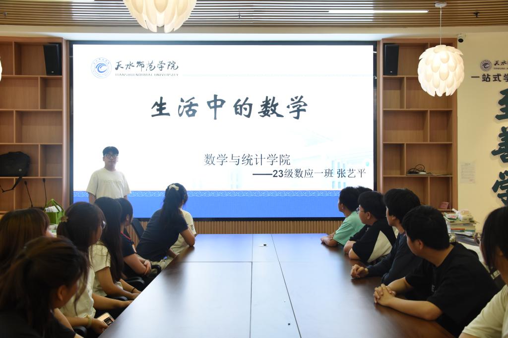 学习经验分享环节,张艺平同学通过生活中实际案例讲解了学习数学的价值和意义;曹品品同学从数学逻辑讲述了学习数学的乐趣和魅力。此外,他俩结合自身学习、工作经历,详细介绍了从数学专业基础课程到专业核心课程的学习方法。同时,还分享了参加全国大学生数学竞赛的经验,鼓励在坐同学积极参与学科竞赛,将理论知识转化运用到解决实际问题中,提升自身的综合能力。